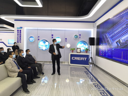 調研中,安志鋼對調研組的到訪表示熱烈歡迎,就空港科銳智慧能源管理系統及地源熱泵空調系統、分布式光伏電站、風力發電站的建設、運行、節能減排等情況向調研組做了詳細匯報,并邀請調研組成員實地查看了地源熱泵機房。他表示,空港科銳作為北京科銳集團的全資子公司,在航空港區經發局、招商局等局委的大力支持下,依托北京科銳能源管理的先進理念和技術優勢,在空港科銳開展園區綜合能源管理模式的探索,建設以分布式光伏發電、風力發電、地源熱泵、水蓄能、電池儲能、充電樁(棚)為主的“源、網、荷、儲/蓄、充”微能源網及水、電、燃氣、冷/暖綜合能源管控系統,打造園區能源互聯網、能源數字化、交互信息化的示范工程。該項目得到了河南省能源局、鄭州市發改委和港區經發局的肯定,獲得了國家能源局清潔能源項目建設補貼,在此代表空港科銳對國家能源局及地方政府相關部門表示衷心的感謝。